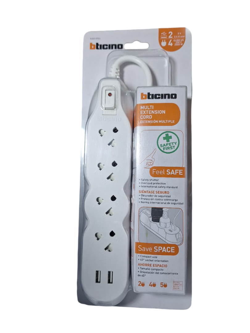 Bticino supresor 4 tomas más tierra con 2 puertos USB/ 3 metros