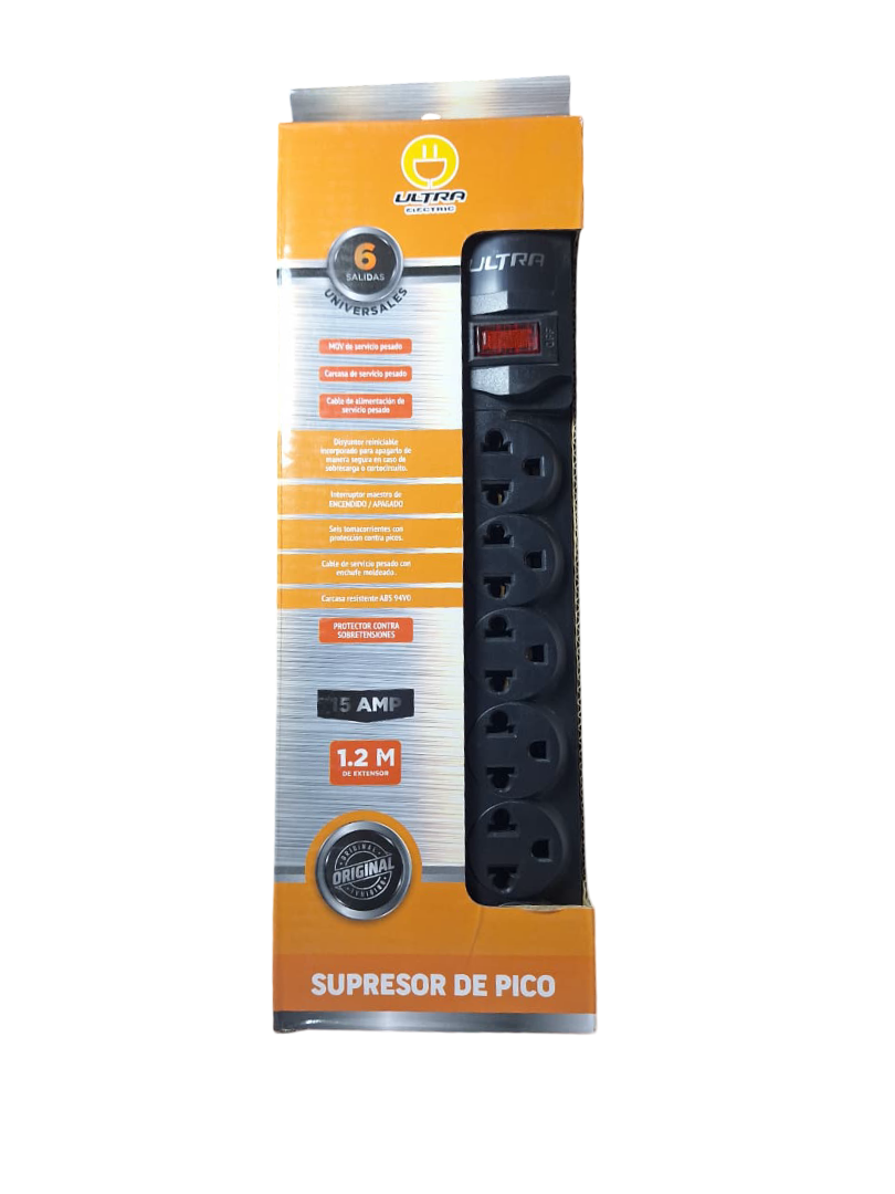 Ultra Electric supresor de picos 6 tomas más tierra 1.2 metros c/ interruptor de encendido cantidad